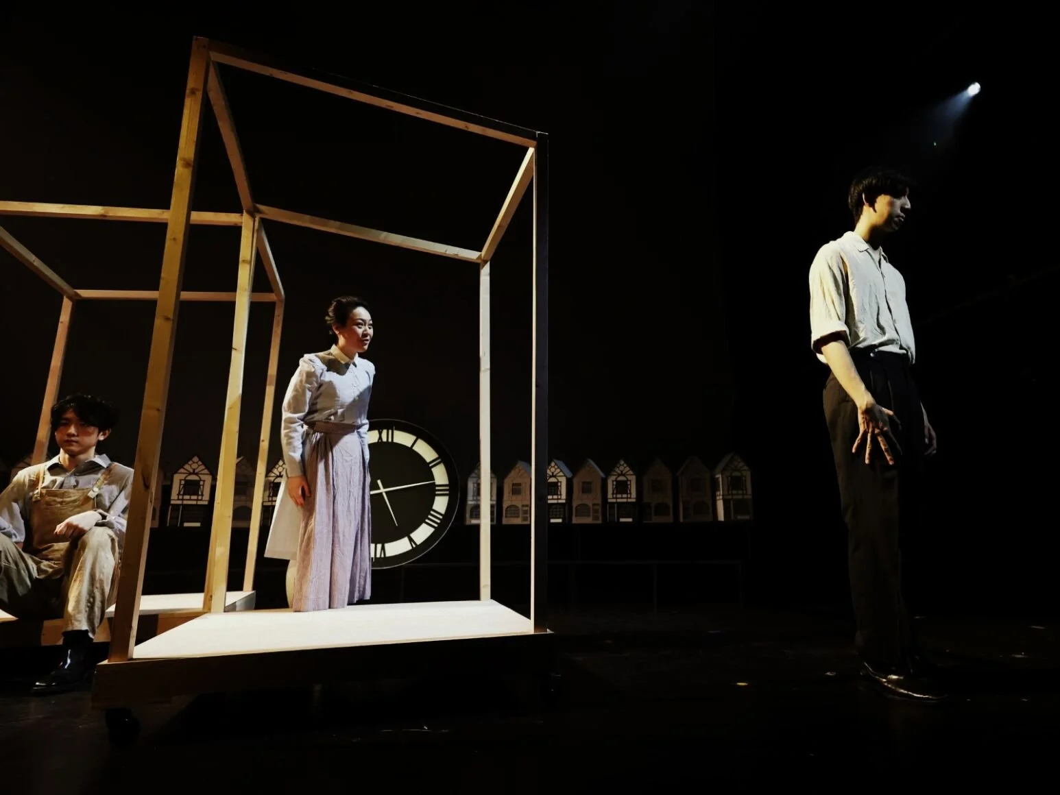 Mine Eyes Have Seen - the untold family tragedy of the Chinese Laboure Corps in WWI, brings the audience back to the 1917 Limehouse—a play with a deconstructed timeline. A clock is staged going backwards, which indicates that the story is told in a reversed order. The play is a brand-new adaptation of the 1918 text. It is set in an abstract space, creating a Brechtian style to let the audience explore the meaning of being British and Chinese.